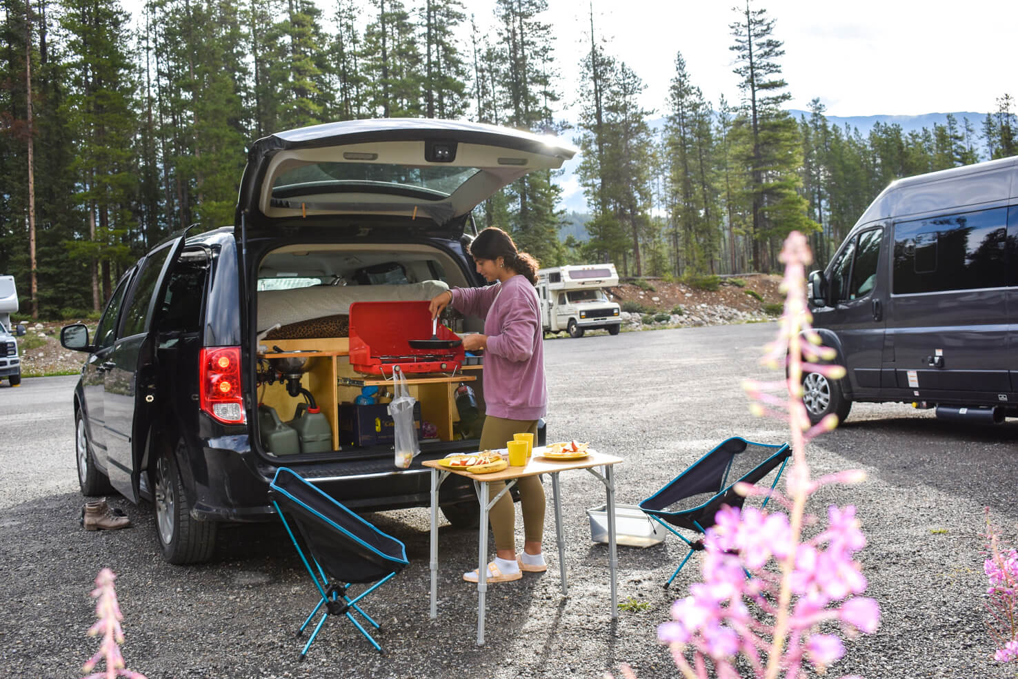 Smile Campervans are custom-built Dodge Grand Caravans and Chrysler Pacificas thoughtfully converted to maximize space, comfort, and practicality for road trips through the Canadian Rockies. Compact on the outside and smartly designed on the inside, they’re easy to drive, easy to park, and far more fuel-efficient than large RVs.